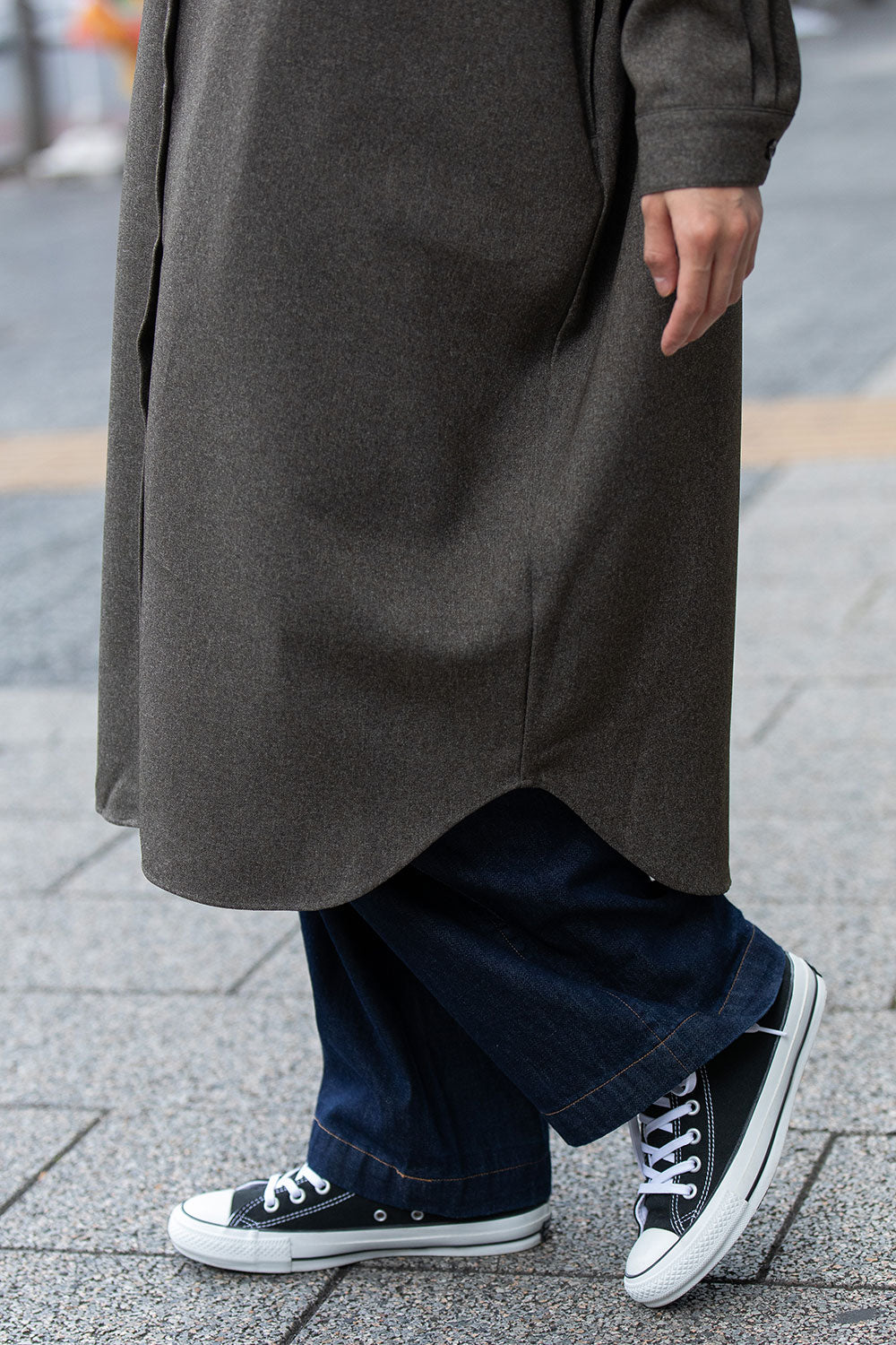 身体と距離をとったゆるいスペックですが、しっかりレングスもあるため暑さの残る日ならボトム無しでワンピース使いが非常に快適なアイテムです。