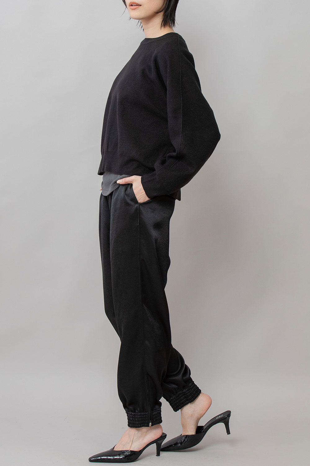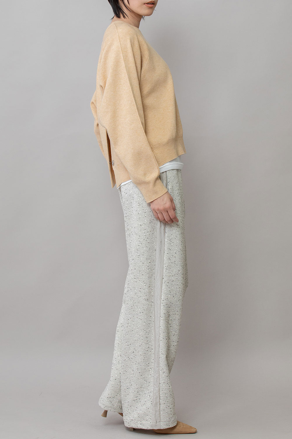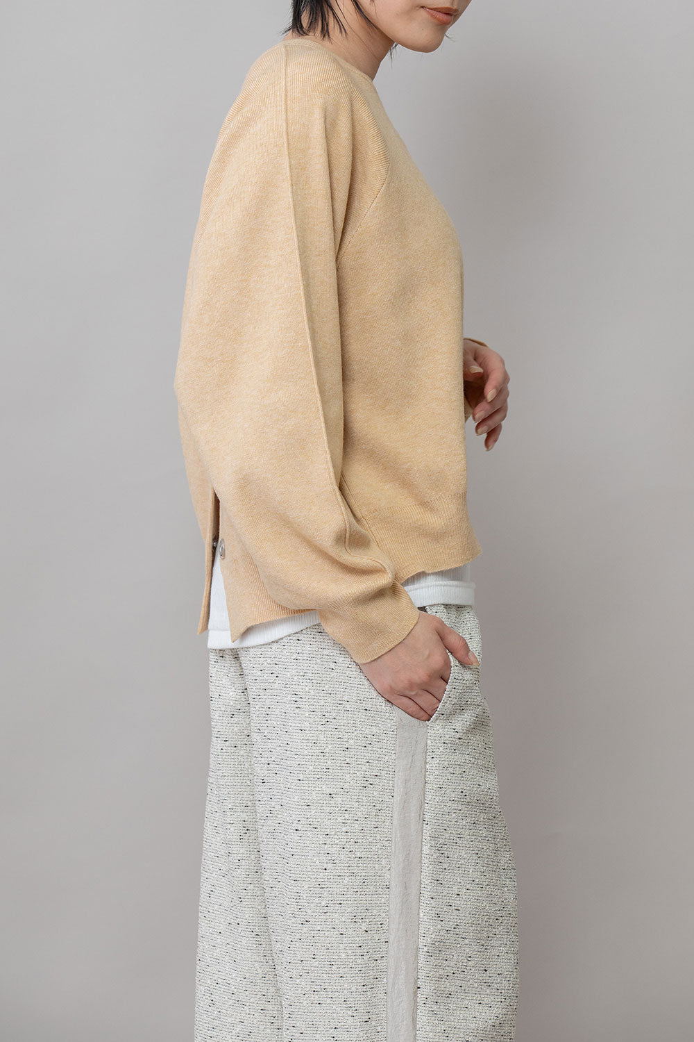 トレンドのワイド目のボトムにも合わせやすい着丈と身幅のバランスに仕上げています。